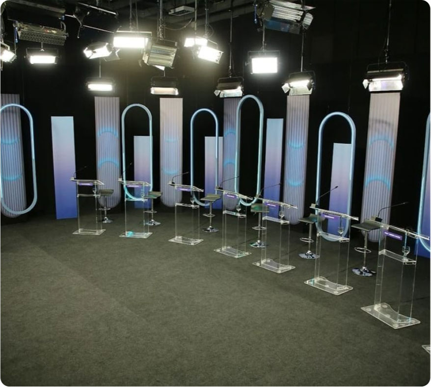 Montagem do cenário onde os candidatos fizeram os debates ao vivo na RPC TV Paraná.